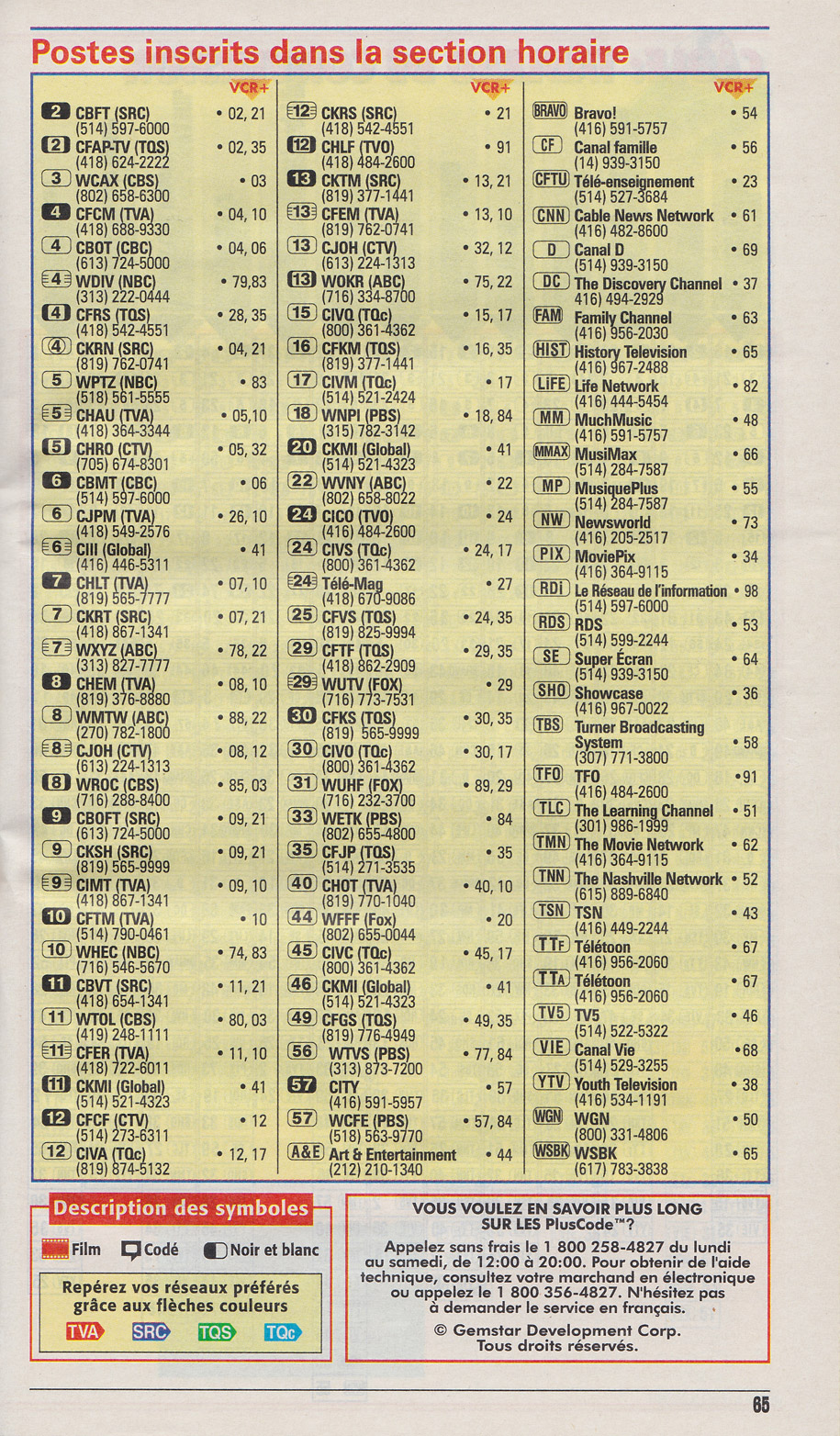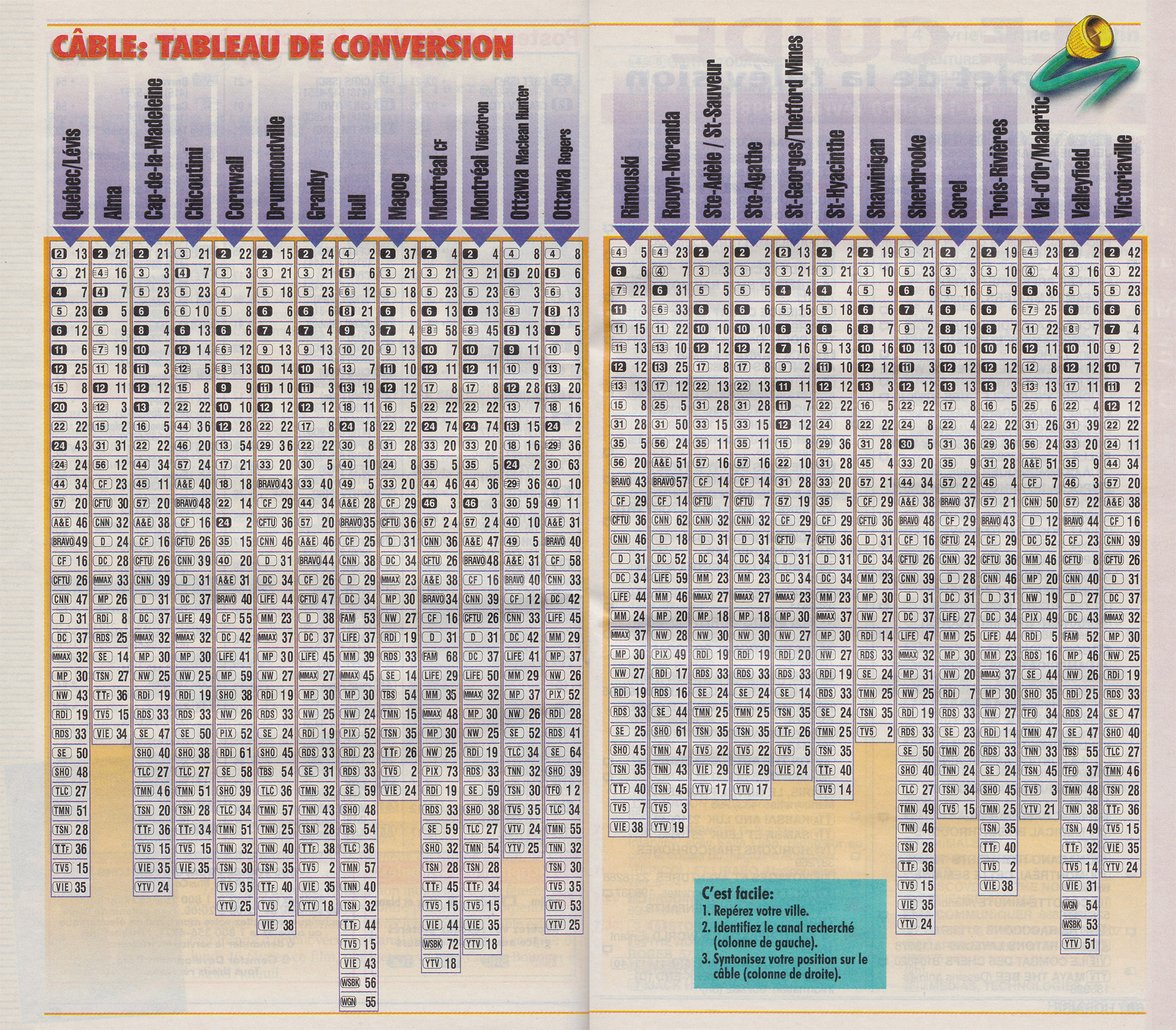Edition Nationale February 14 1998 Edition Nationale Postes inscrits dans la section horaire Edition Nationale Câble: Tableau de Conversion