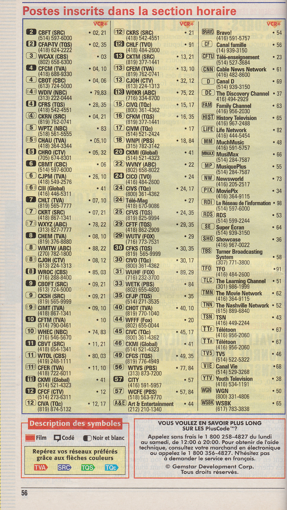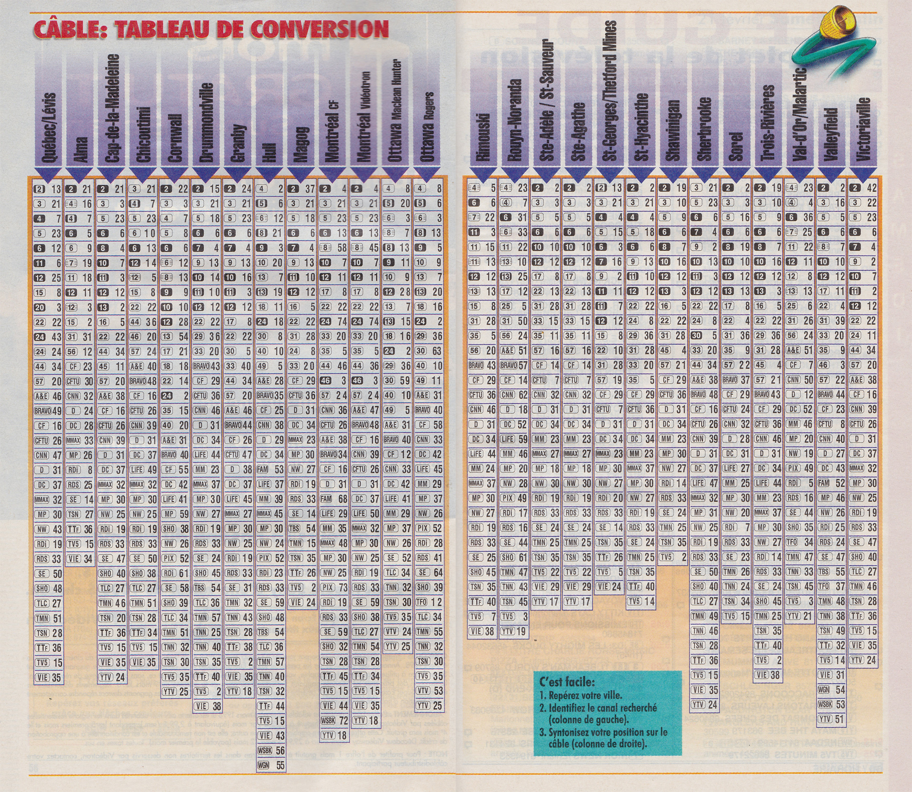 TV Hebdo Édition Nationale February 21 1998 TV Hebdo Édition Nationale Postes inscrits dans la section horaire TV Hebdo Édition Nationale Câble: Tableau de Conversion