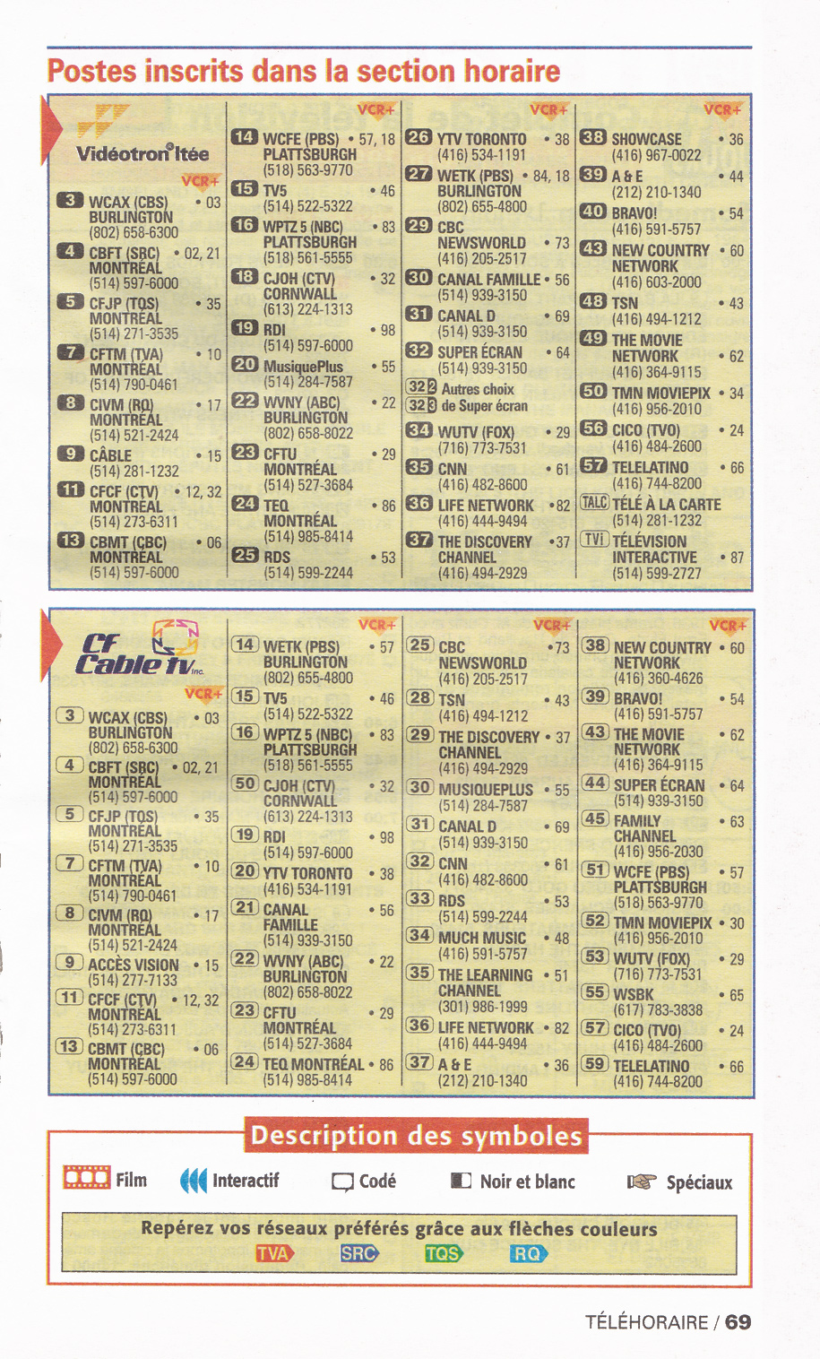 TV Hebdo Édition Métro Câble (Vidéotron/CF Cable TV Montréal) June 1 1996 TV Hebdo Édition Métro Câble (Vidéotron/CF Cable TV Montréal) Postes inscrits dans la section horaire